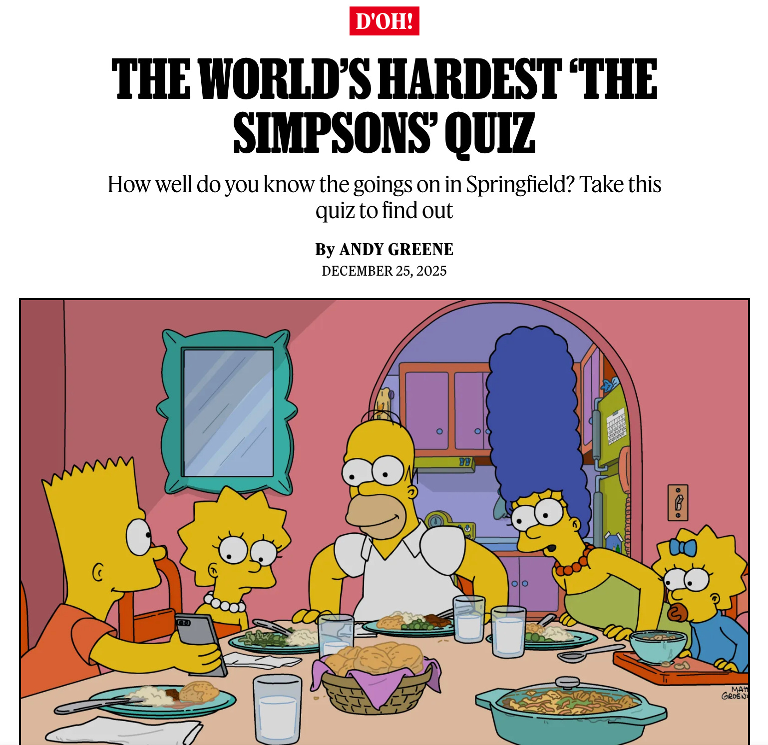 My mom recently shared a Simpsons Trivia Quiz in our family groupchat. It advertised itself as “The World’s Hardest ‘The Simpsons’ Quiz.”