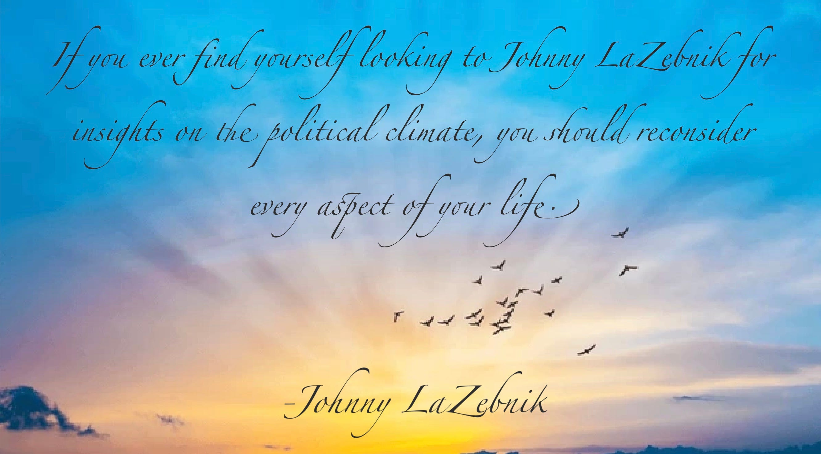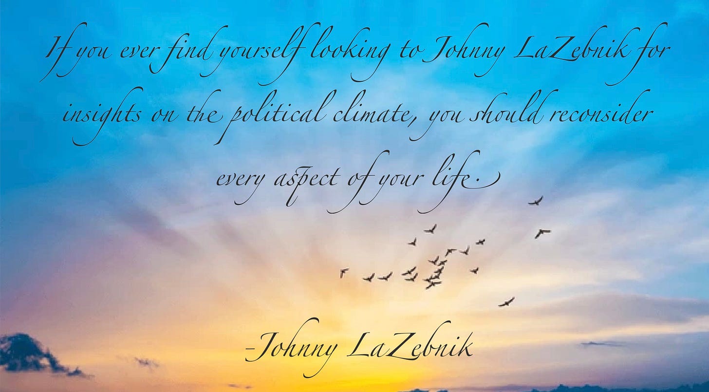 Additionally, I think I’ve said it before, but it bears repeating: if you ever find yourself looking to Johnny LaZebnik for insights on the political climate, you should reconsider every aspect of your life. Here’s that quote as a graphic, in case you want to put it up in your office: